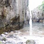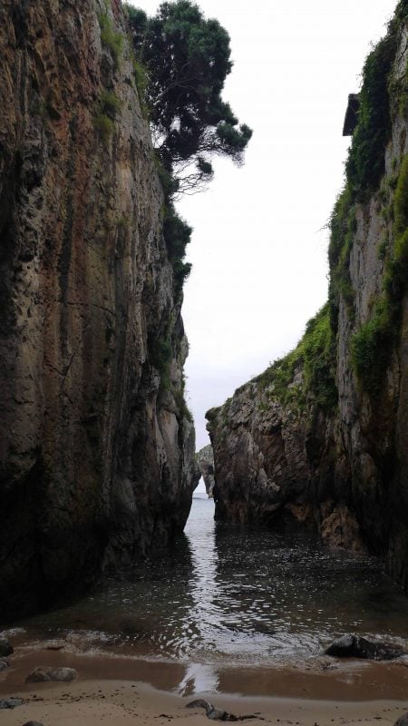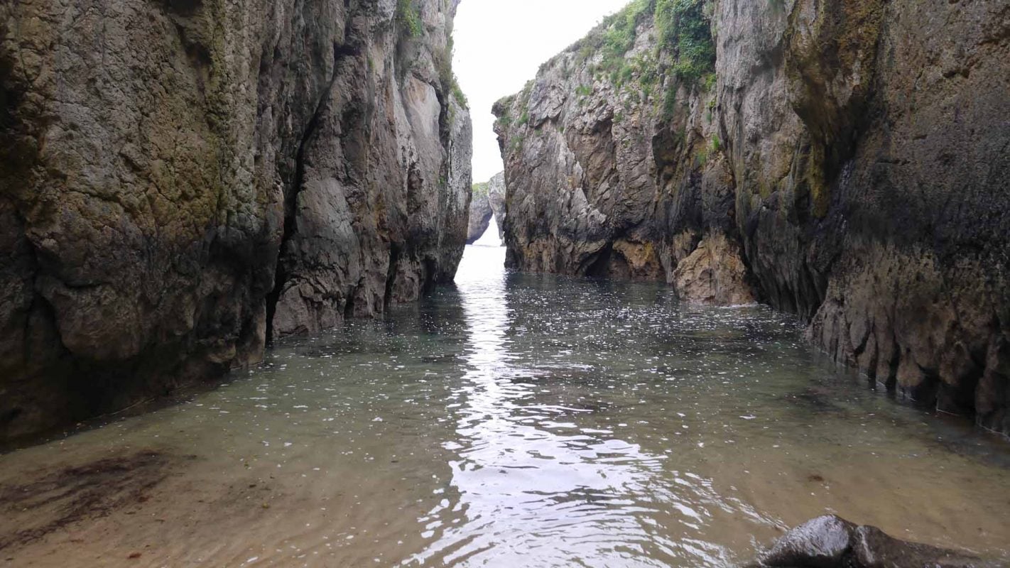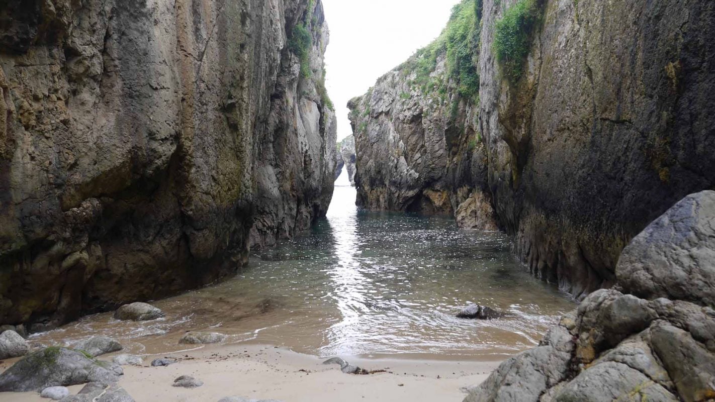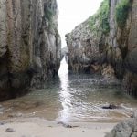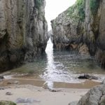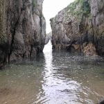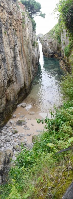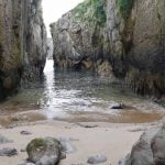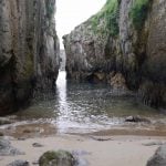Impresiona la altura de estos, y quedarse bajo ellos al final de dichas escaleras. Las vistas que hay desde abajo, con el Castro al frente, y el agua entre dos moles de piedra en esta estrechísima playa, son impresionantes. Mucho cuidado con la subida de la marea y el temporal que pueda hacer, ya que podría ser peligroso.
